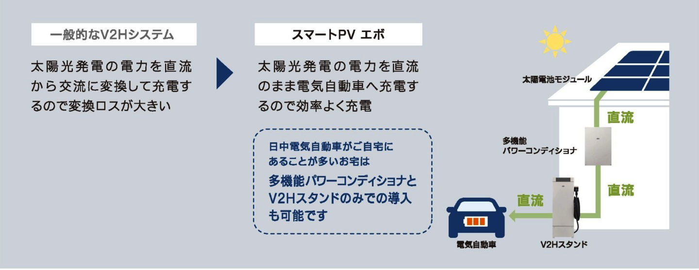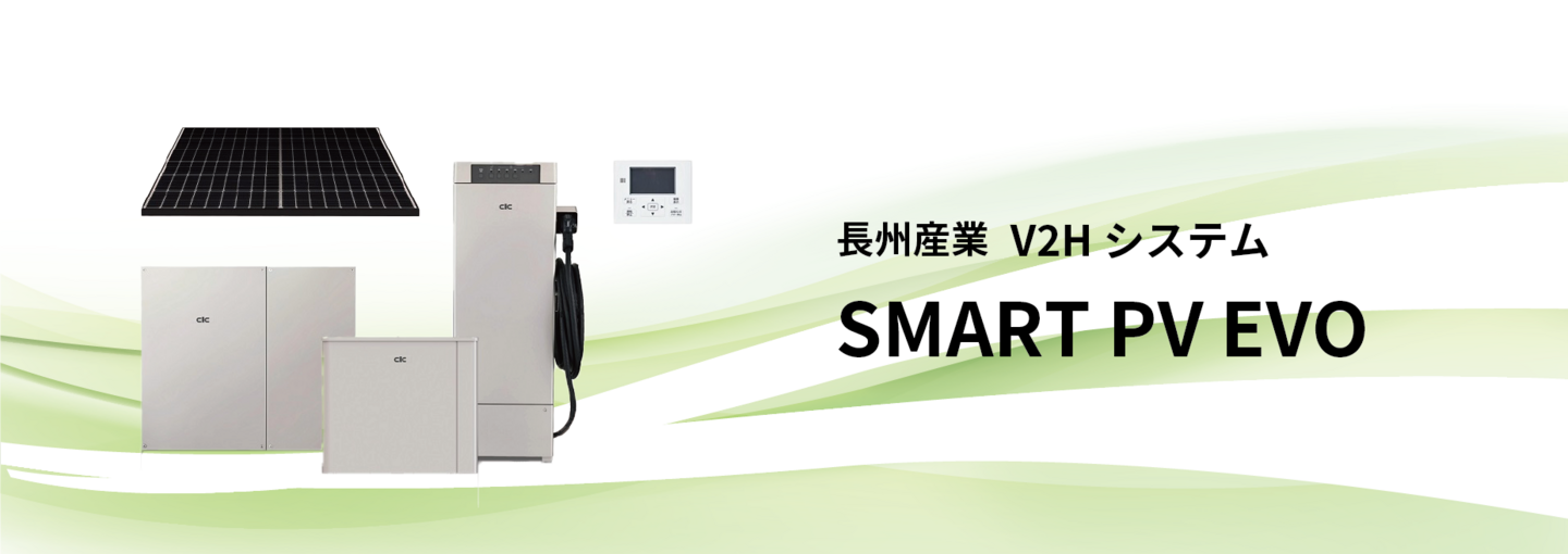 太陽光発電、蓄電池、電気自動車を連携し、家庭のエネルギーを効率的に管理するV2Hシステム「SMART PV EVO」。