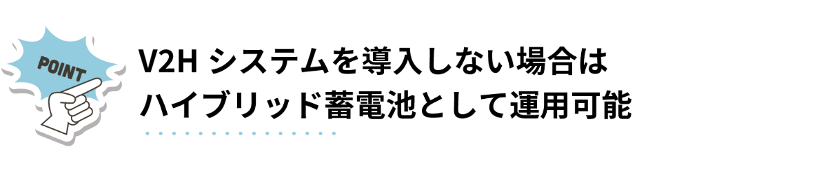 V2Hスタンドがない場合でも、太陽光発電と蓄電池を効率的に連携するハイブリッド蓄電システムとして稼働します。