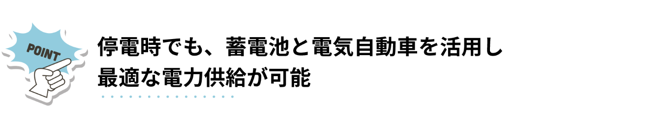 蓄電池があれば、万が一の停電時も安心。さらに電気自動車と連携すれば、より柔軟に対応できます。